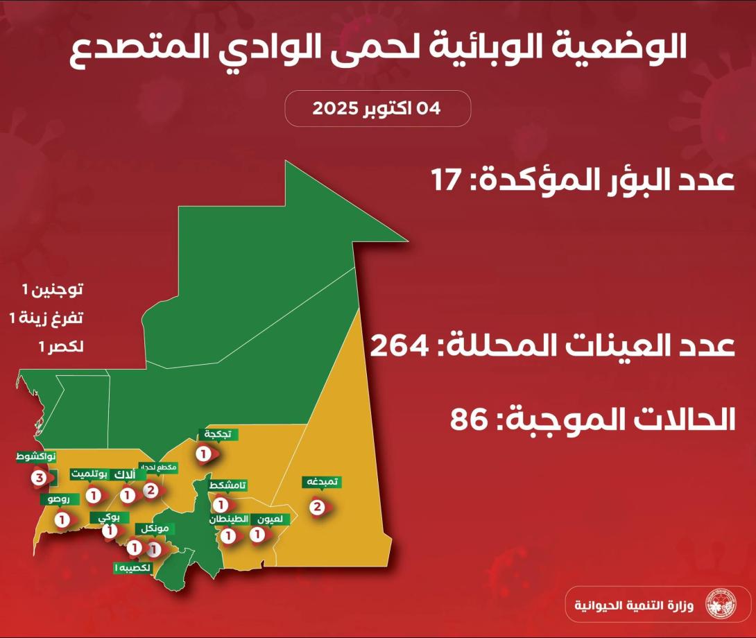 أعلنت الإدارة الجهوية للصحة في كيديماغا، اليوم الثلاثاء، تسجيل أول حالة إصابة بشرية مؤكدة بحمى الوادي المتصدع على مستوى الولاية.