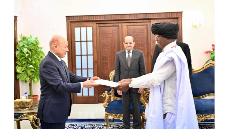 قدم سعادة السيد محمد الأمين ولد إبراهيم، اليوم الخميس، في قصر معاشيق بالعاصمة المؤقتة عدن، أوراق اعتماده لفخامة الدكتور رشاد محمد العليمي، رئيس مجلس القيادة الرئاسي اليمني، بصفته سفيرا فوق العادة وكامل السلطة للجمهورية الإسلامية الموريتانية لدى جمهورية اليمن.